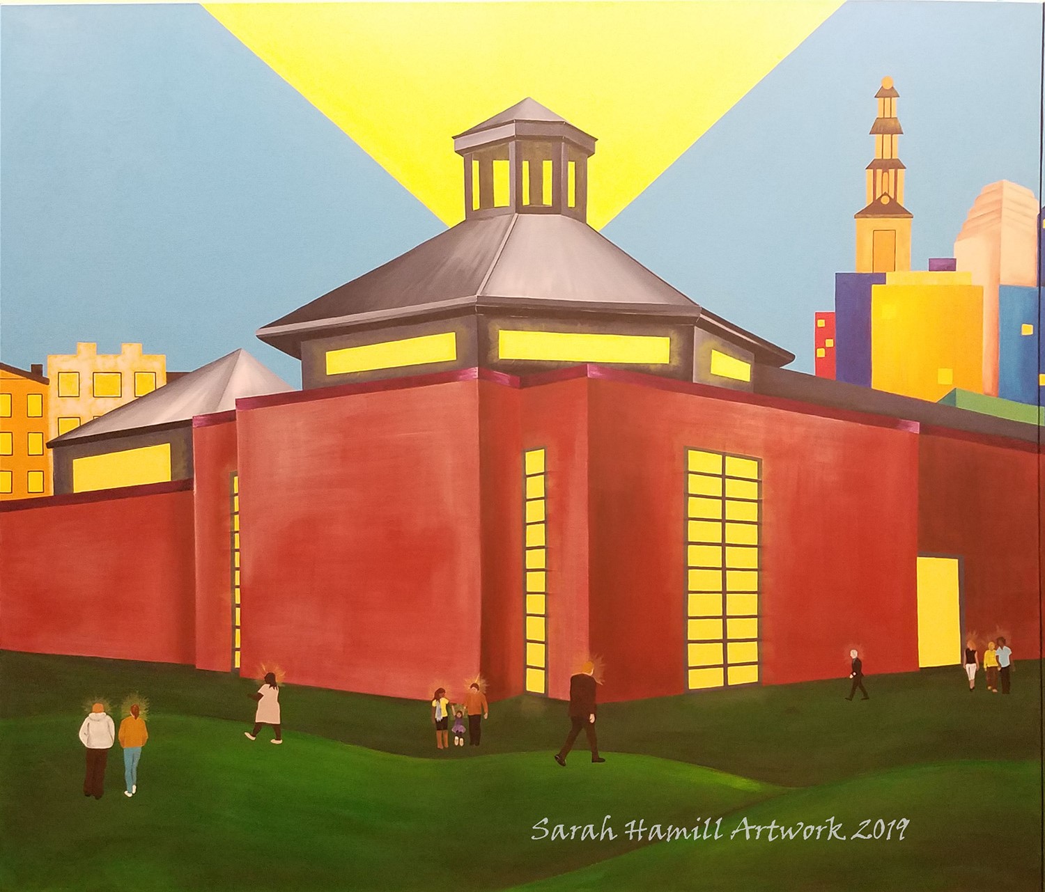 Another art teacher (Mrs. Kristin Bauer) drew the design for this mural on the wall of the school before the Covid-19 pandemic. I worked at the school the following school year and was asked to paint the mural. I did all the color choices and color mixing for this piece, but did not create the original design.